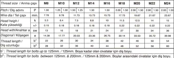 Altıköşe Başlı İnce Dişli Civatalar